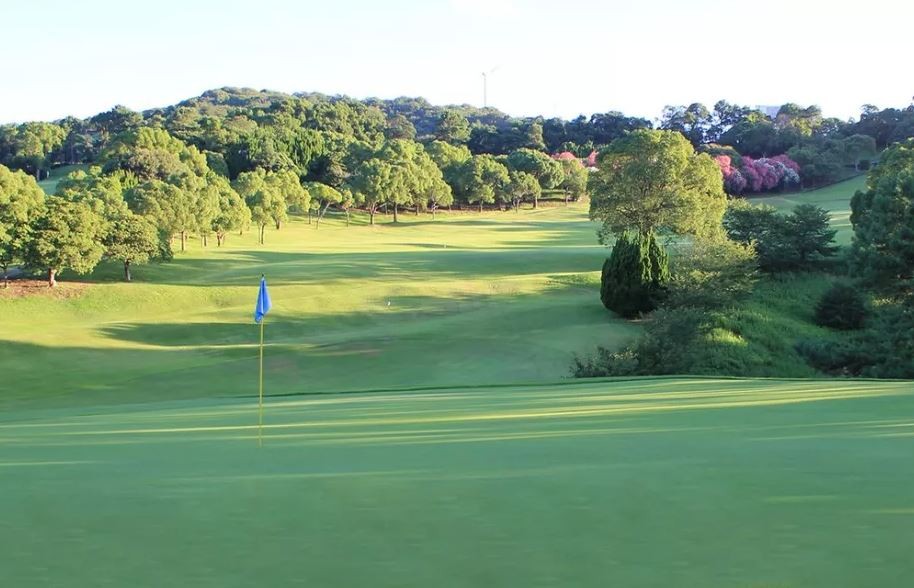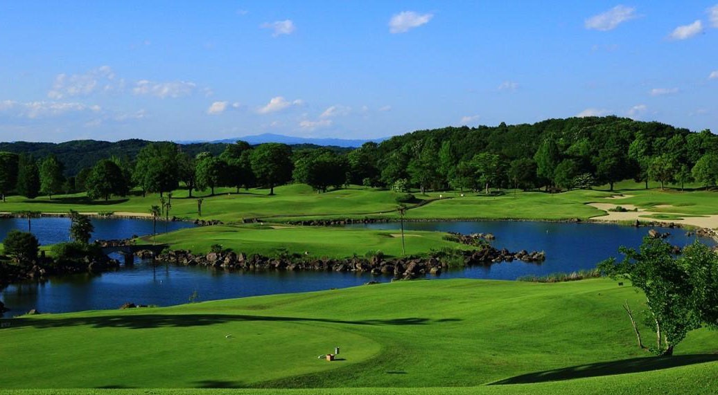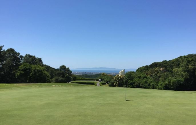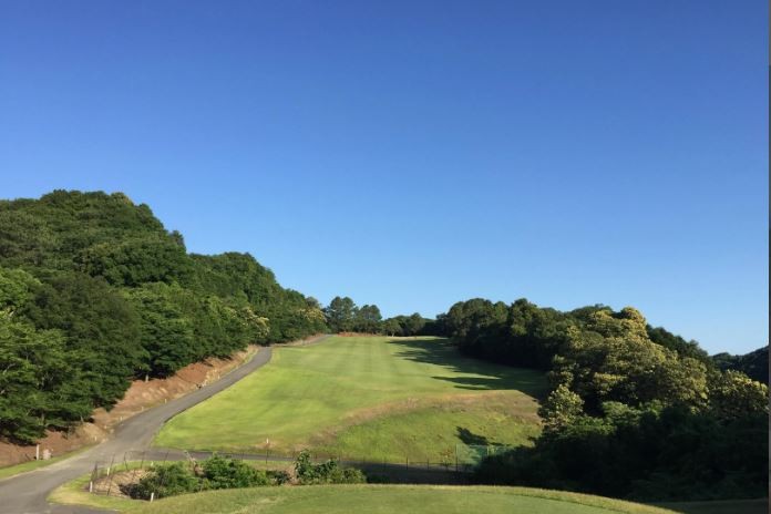 와카야마현 제일의 플랫한 구릉 코스를 둘러싼 산줄기와 코스 내 연못의