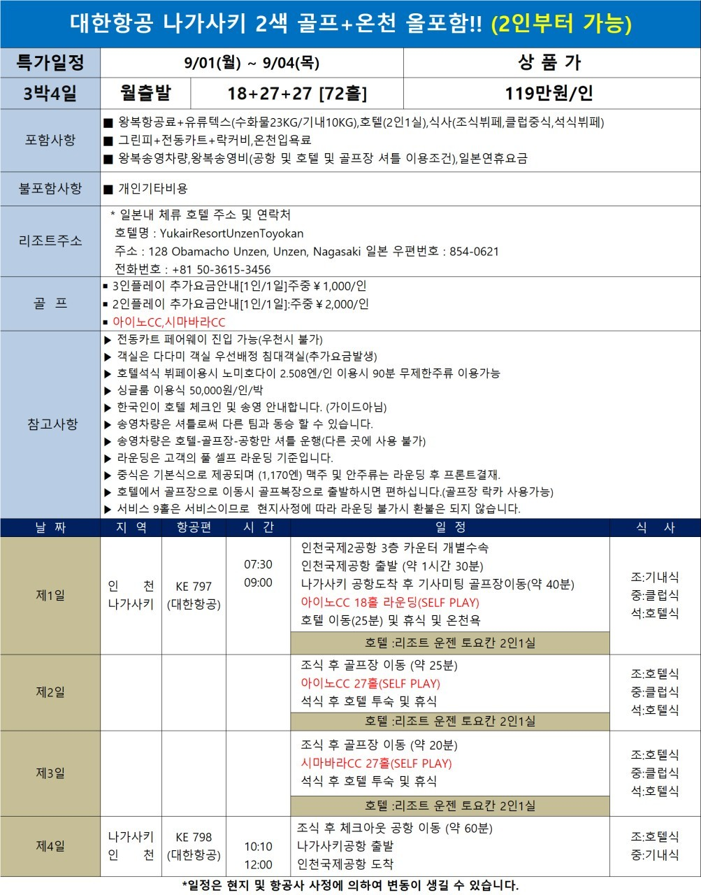 ๐จ9์1์ผ ~ 4์ผ <3๋ฐ4์ผ> : 1,190,000์