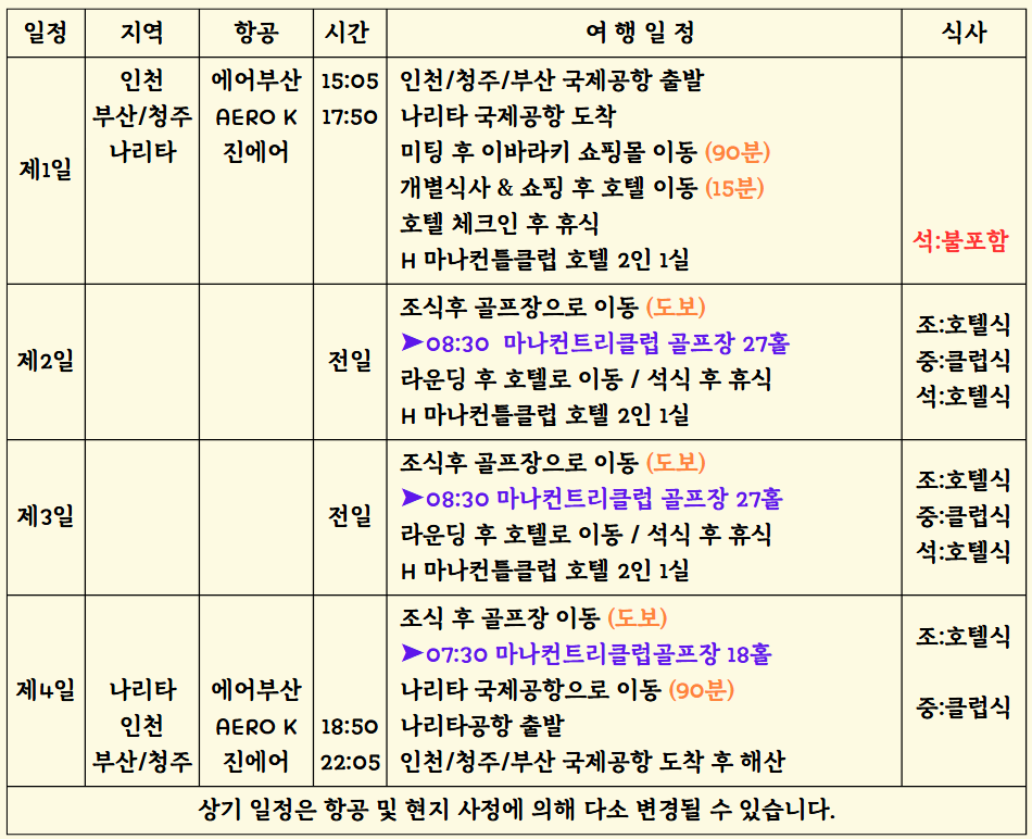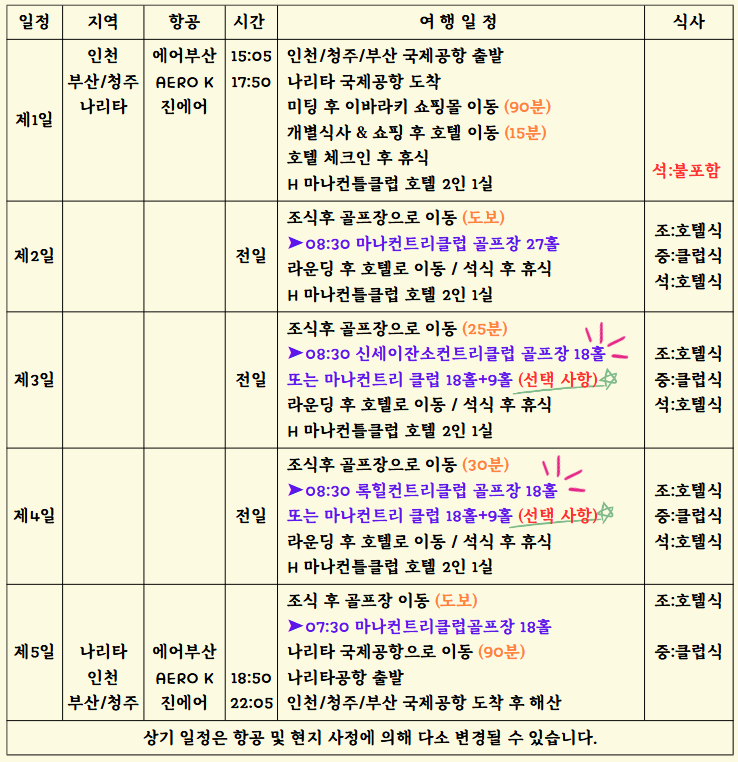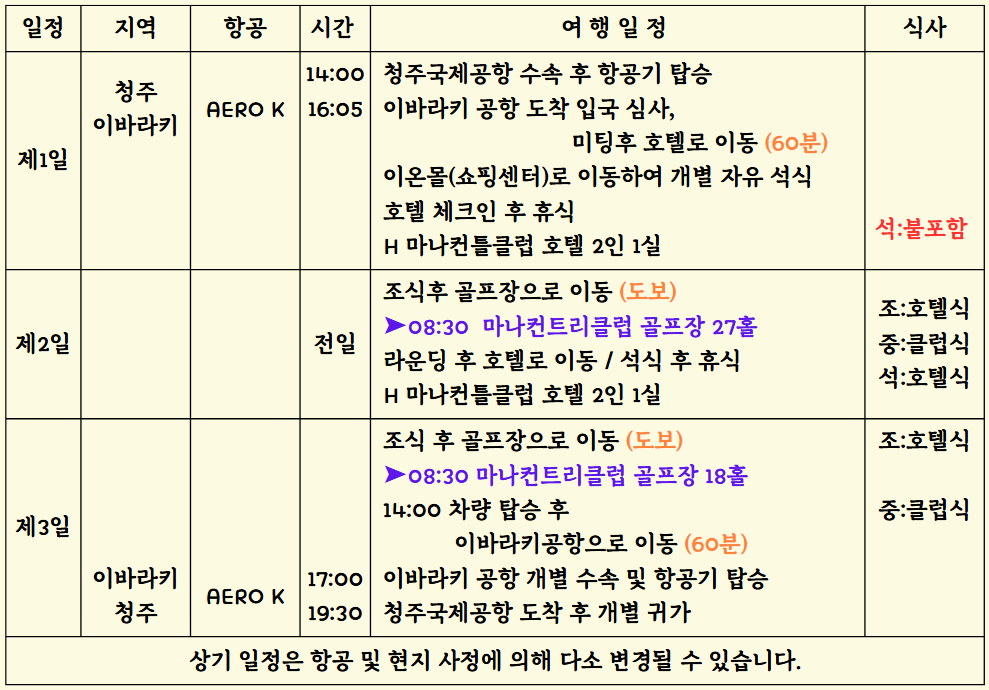 ⭕️ 토요일 출발 3박 63홀 1,099,000원