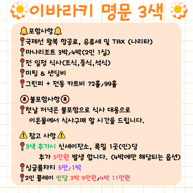 ⭕️ 3박 일/수 출발 & 4박 화 출발 : 별도 문의