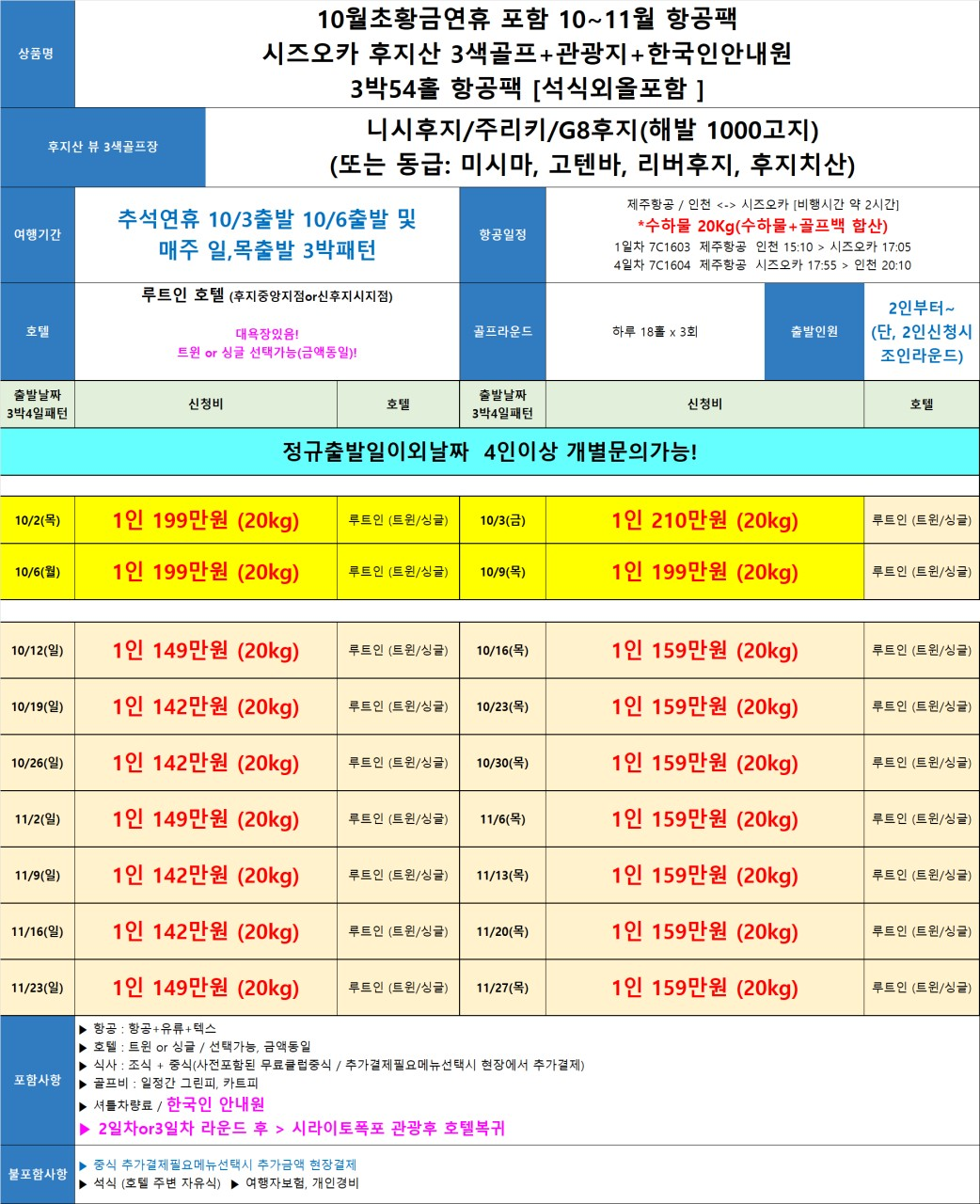 โ 8~11์ ๋งค์ฃผ ์ผ์ถ๋ฐ139๋ง~, ๋ชฉ์ถ๋ฐ157๋ง~