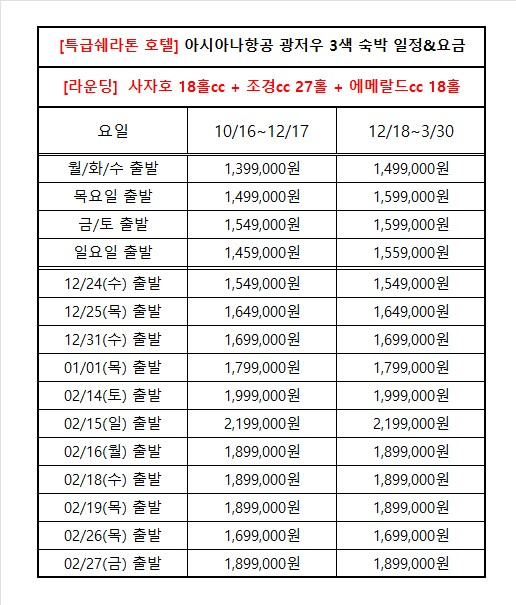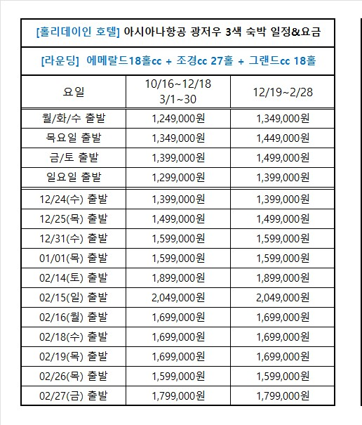 *12/19 이후 일정은 1인 10만원 요금이 추가됩니다 (3박4일)
