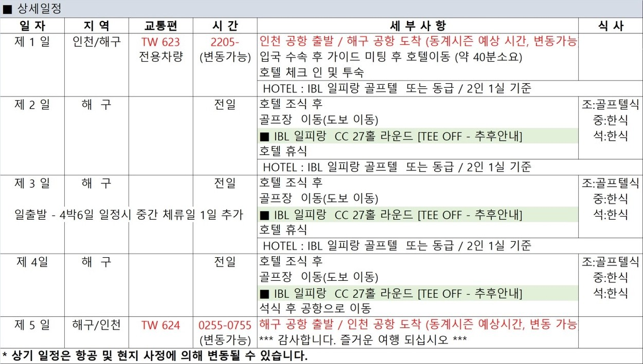 🌴 왕복 항공 + 숙박 + 전 일정 식사 + 그린피 포함