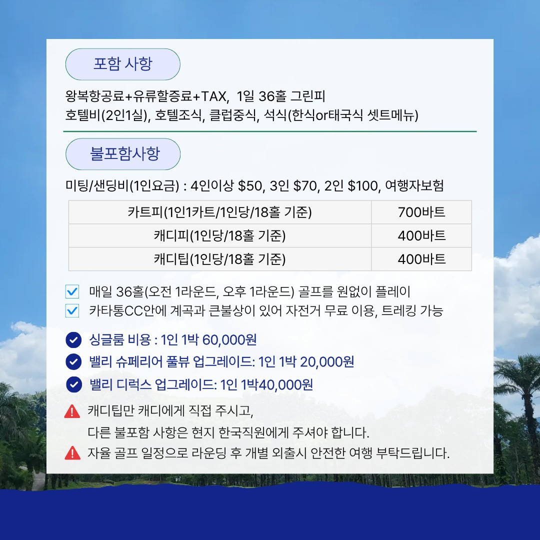 ✅카오락 또는 팡아시내로 접근성이 용이하여 라운드후 차량이용하여 투어도 가능