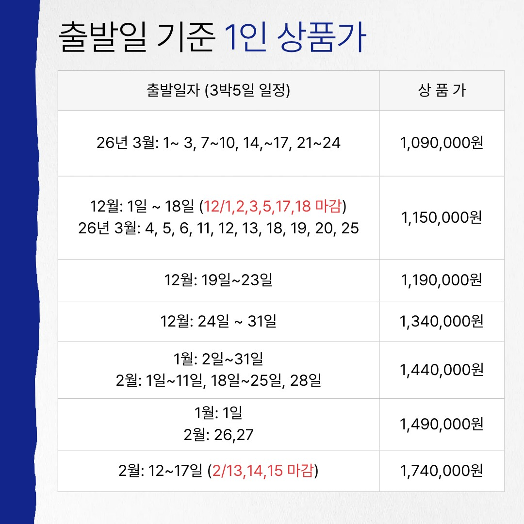 3박5일 항공 포함 1인 109만원 부터~