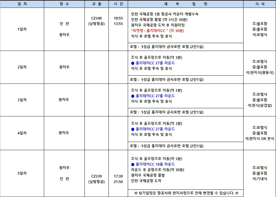 ✅ 남방항공 스케쥴로 도착일은 편하게 쉬고, 다음날 상쾌하게 라운딩 시작!