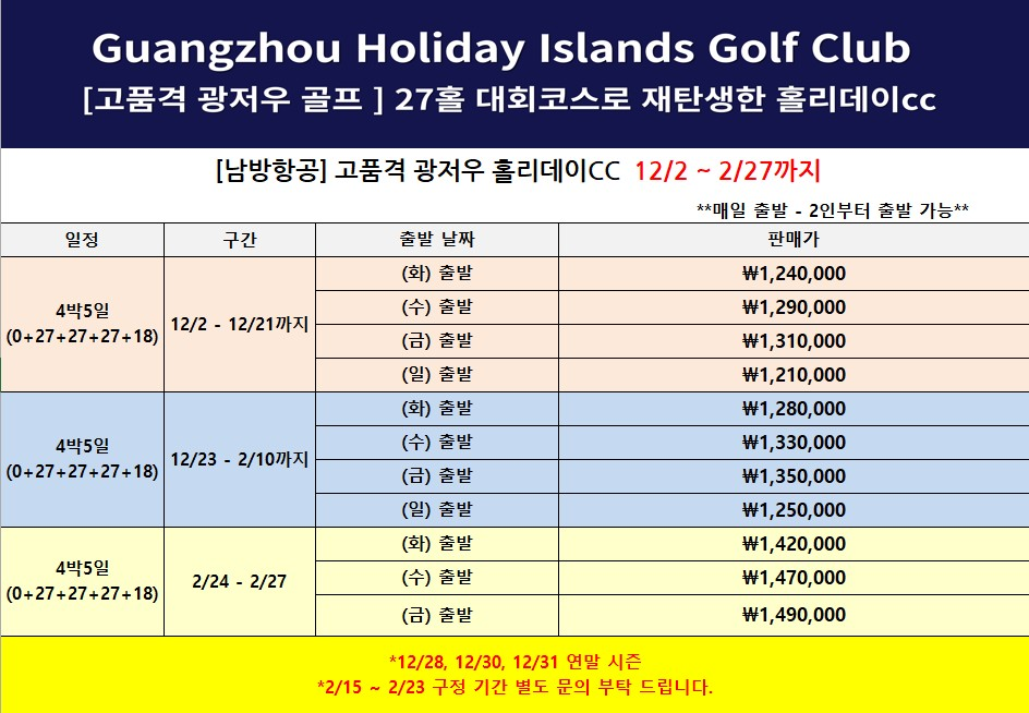광저우 4박5일 남방항공 중석패턴 특가! (0+27+27+27+18)
