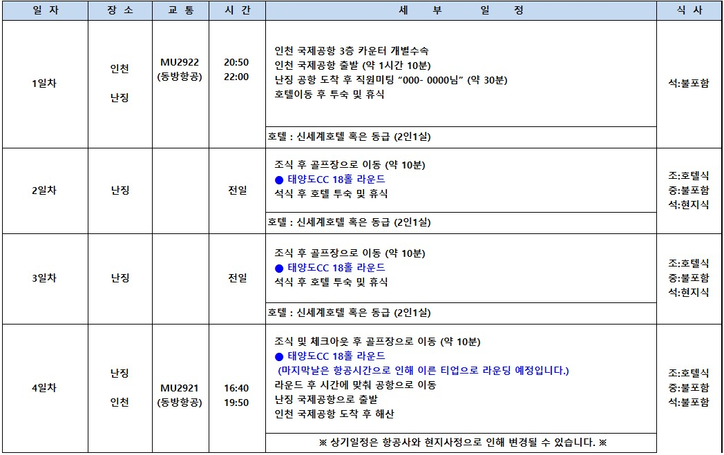 📆숨겨왔던 고품격 겨울 라운딩 남경 올포함 3박4일