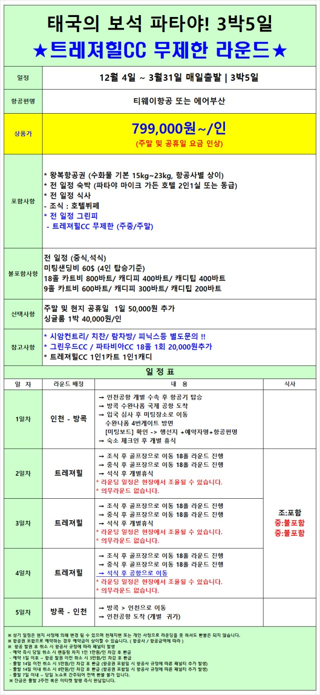 * 시암컨트리/ 치찬/ 람차방/ 피닉스등 별도문의 !!