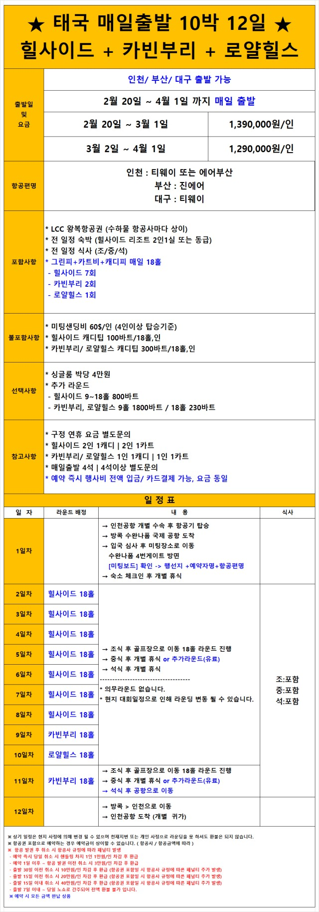 * 그린피+카트비+캐디피 매일 18홀