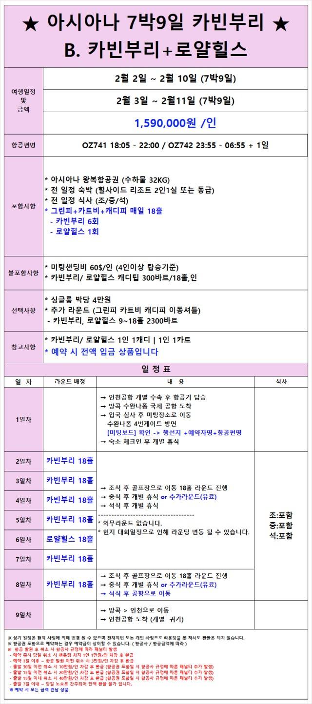 ✈️ 태국 7박 9일 힐·카·로 초이스 골프