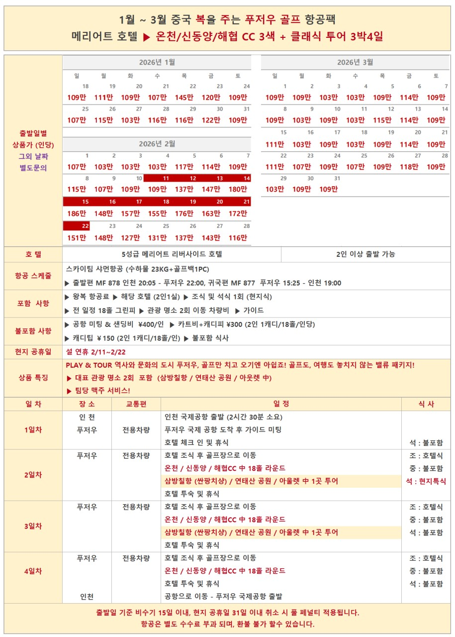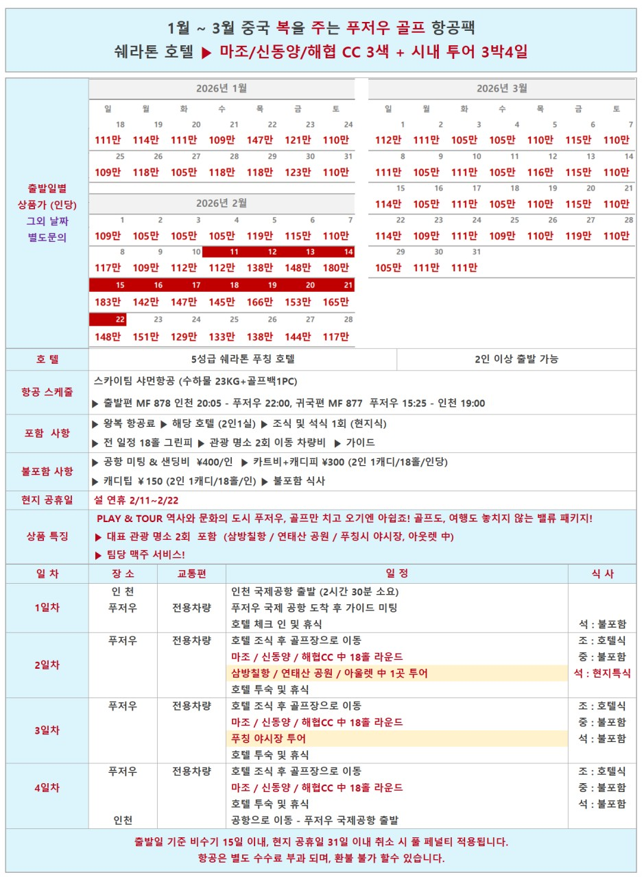 📆 출발 : 2026년 1월 ~ 3월