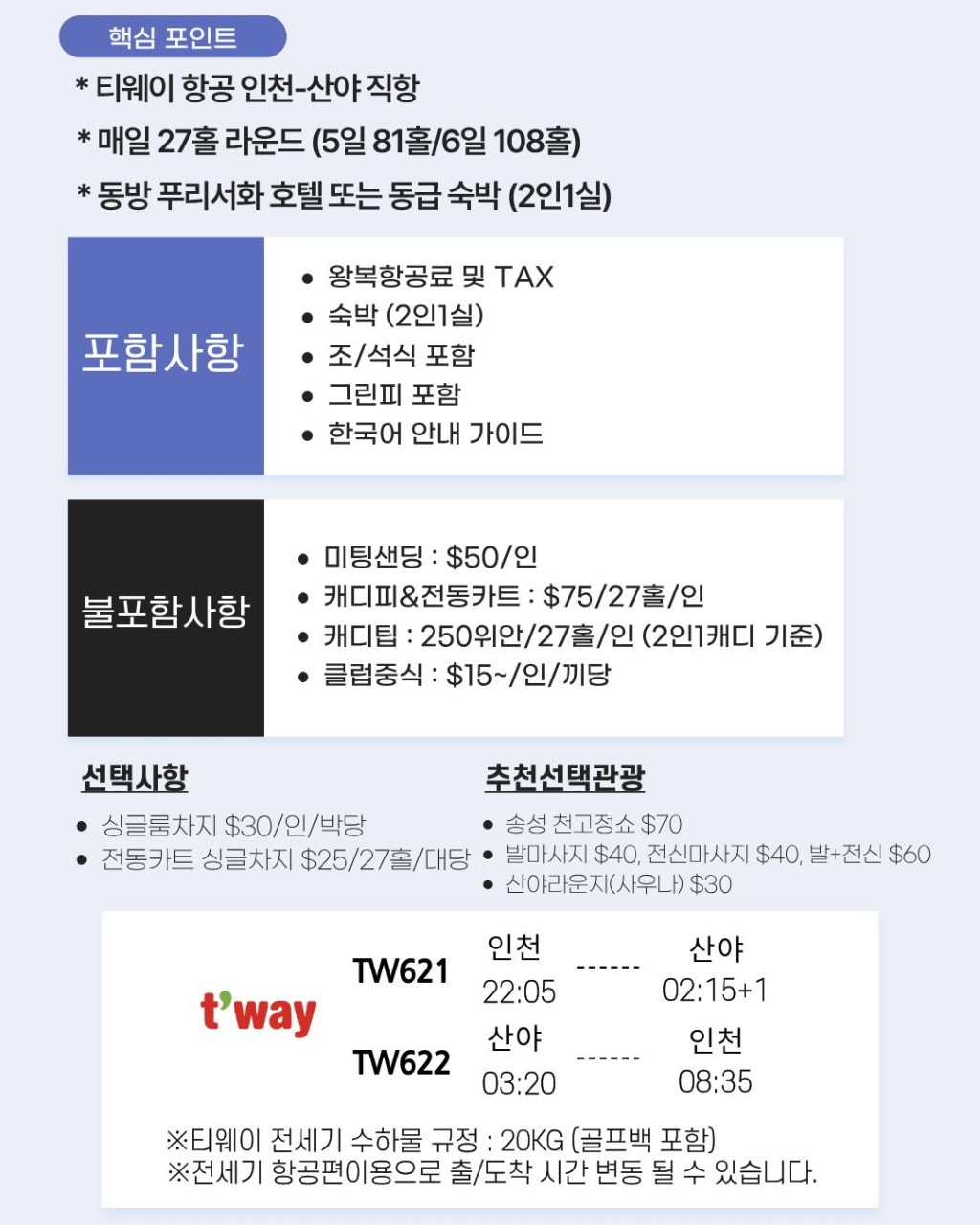 ✈️ 항공 스케줄 [수 출발 3박5일, 토 출발 4박6일]