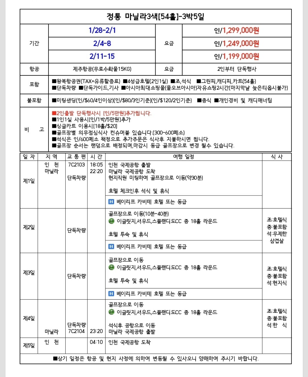 🔵출발: 1/28 , 2/4,11출발[3박5일]54홀