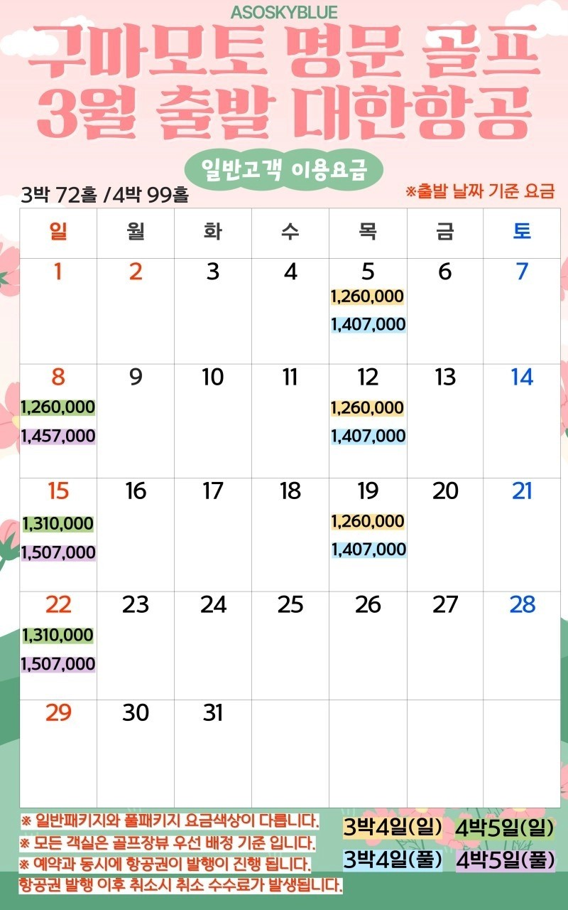 2~3월⛳️구마모토 아소스카이블루CC 새 시즌 오픈 3박4일 1,040,000원~ 챔피언쉽코스 - 최고의 가성비BESTMD