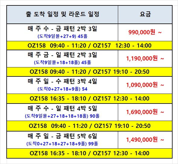 ⛳ 4월 금-일 2박3일 일정표