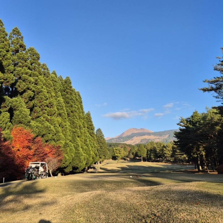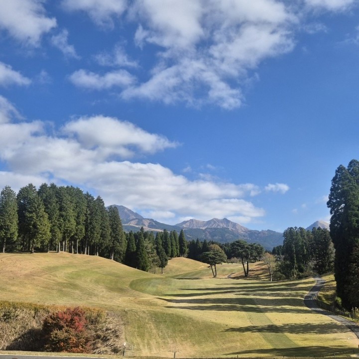 ↪️일본 최대의 칼데라 화산인 아소산의 웅장한 풍경을 배경으로 라운딩 하면서 매홀마다 저절로 감탄을 자아내는 풍경↩️