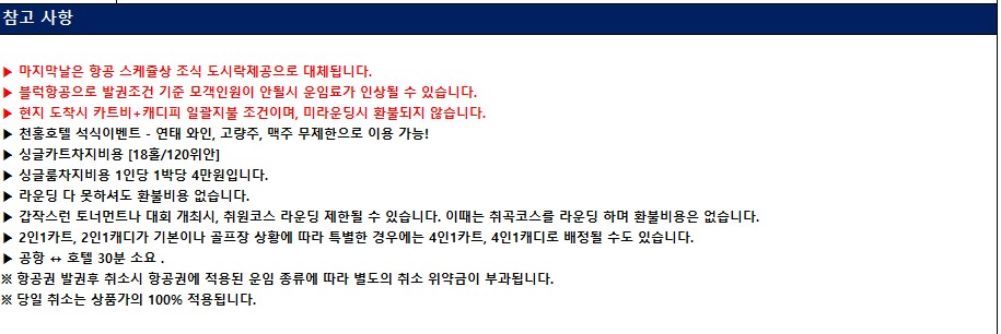 ▶ 현지 도착시 카트비+캐디피 일괄지불 조건이며, 미라운딩시 환불되지 않습니다.