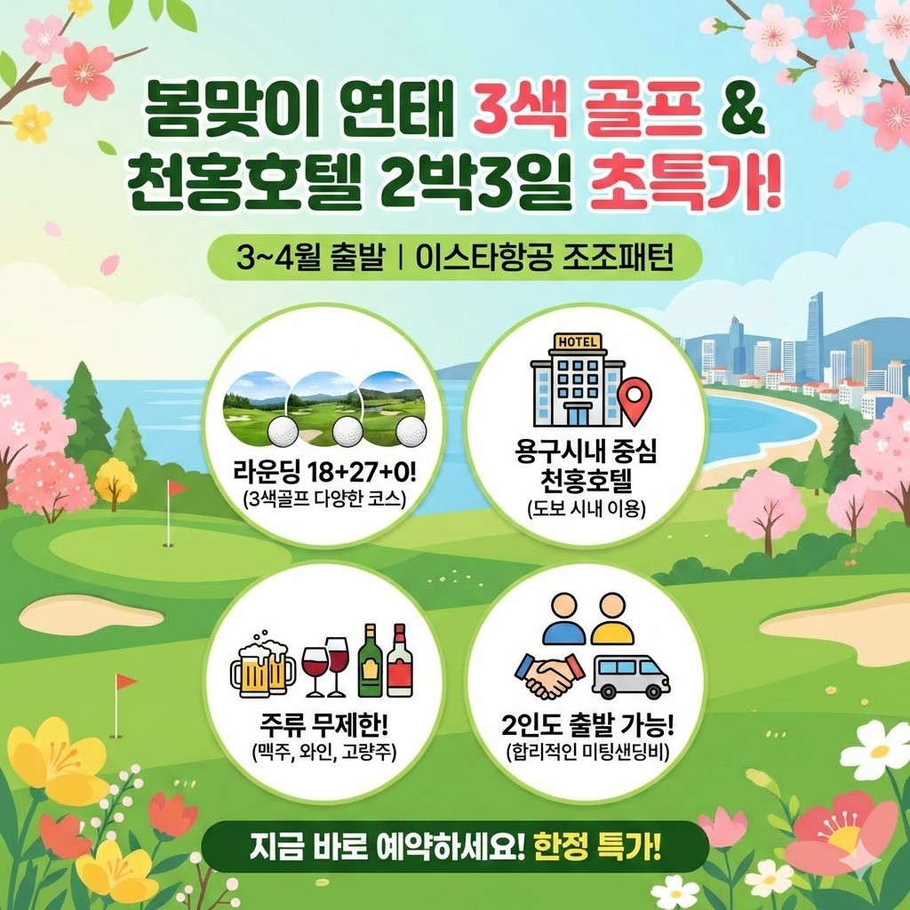 🌸봄바람 부는 연태로! 낮엔 나이스샷, 밤에는 치얼스! 3~4월 갓성비 특가🛩
