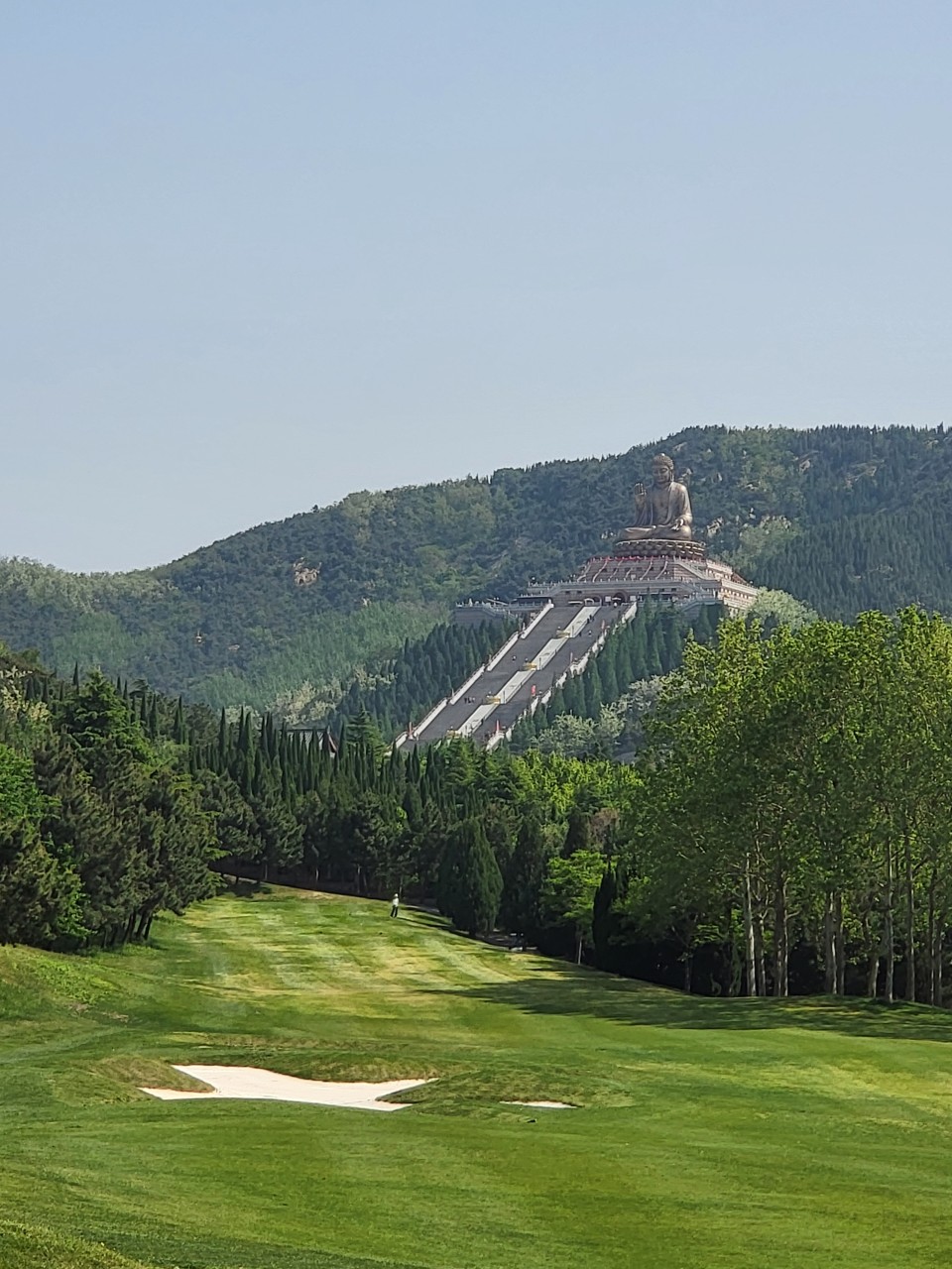 중국에서 2번째로 어렵다는 불광CC에서 라운딩을 했습니다. 남산의 동북쪽 산악 지형에 위치하며 대부분의 홀이 남산대불상을 바라보며 샷을 하게끔 설계되어 있어 경관이 수려합니다.