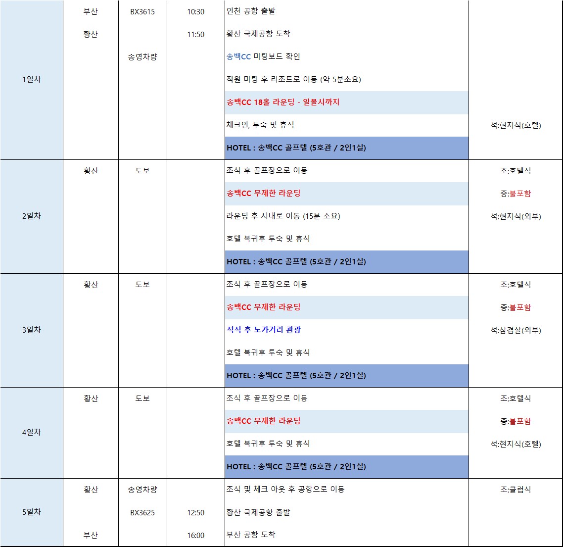📍해당 상품은 숙소(2인1실/ 5호관), 조식/석식, 무제한 그린피 포함입니다.