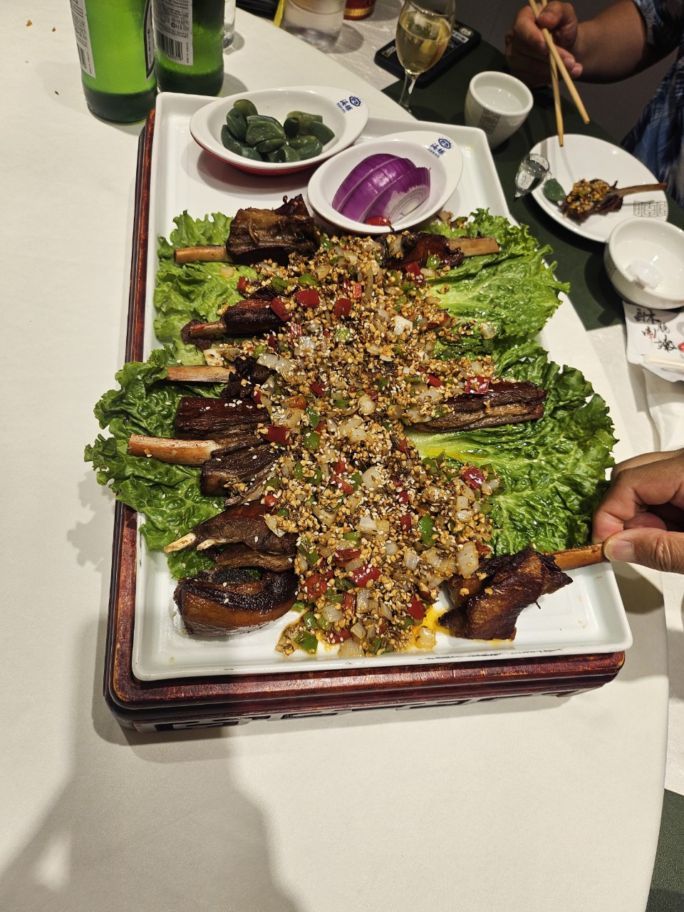 -저희는 6명에서 베이징덕과 양갈비, 각종 요리 7~8개 와 맥주 5병..정도 먹었는데 총 15만원(한화 기준) 나왔습니다. 빠이주(중국술)은 외부서 사서 가지고 들어갔습니다. 괜찬습니다. . 맥주만 조금 시키면 외부 주류 반입 가능합니다.
