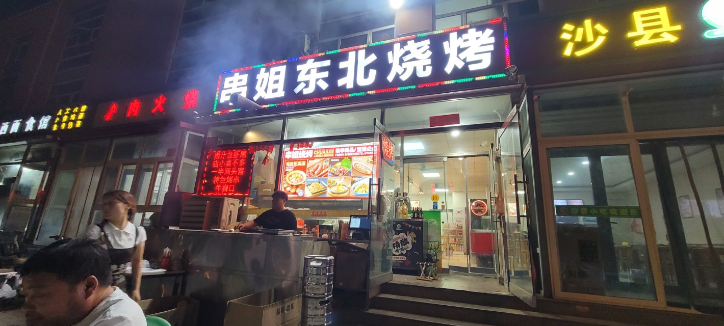 완다호텔 정문에서 호텔끼고 오늘쪽으로 두번 턴 후 쭉 50미터 걸어가면 양꼬치집이 두개 나옵니다. 다양한 술도 구매할 수 있는 샾도 있습니다. 무지 저렴합니다.