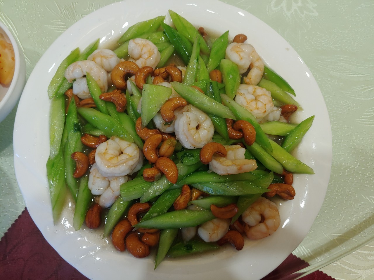 중식 요리: 사천닭튀김 65위안 마파두부 55위안 새우볶음 90위안 등