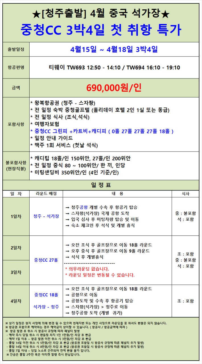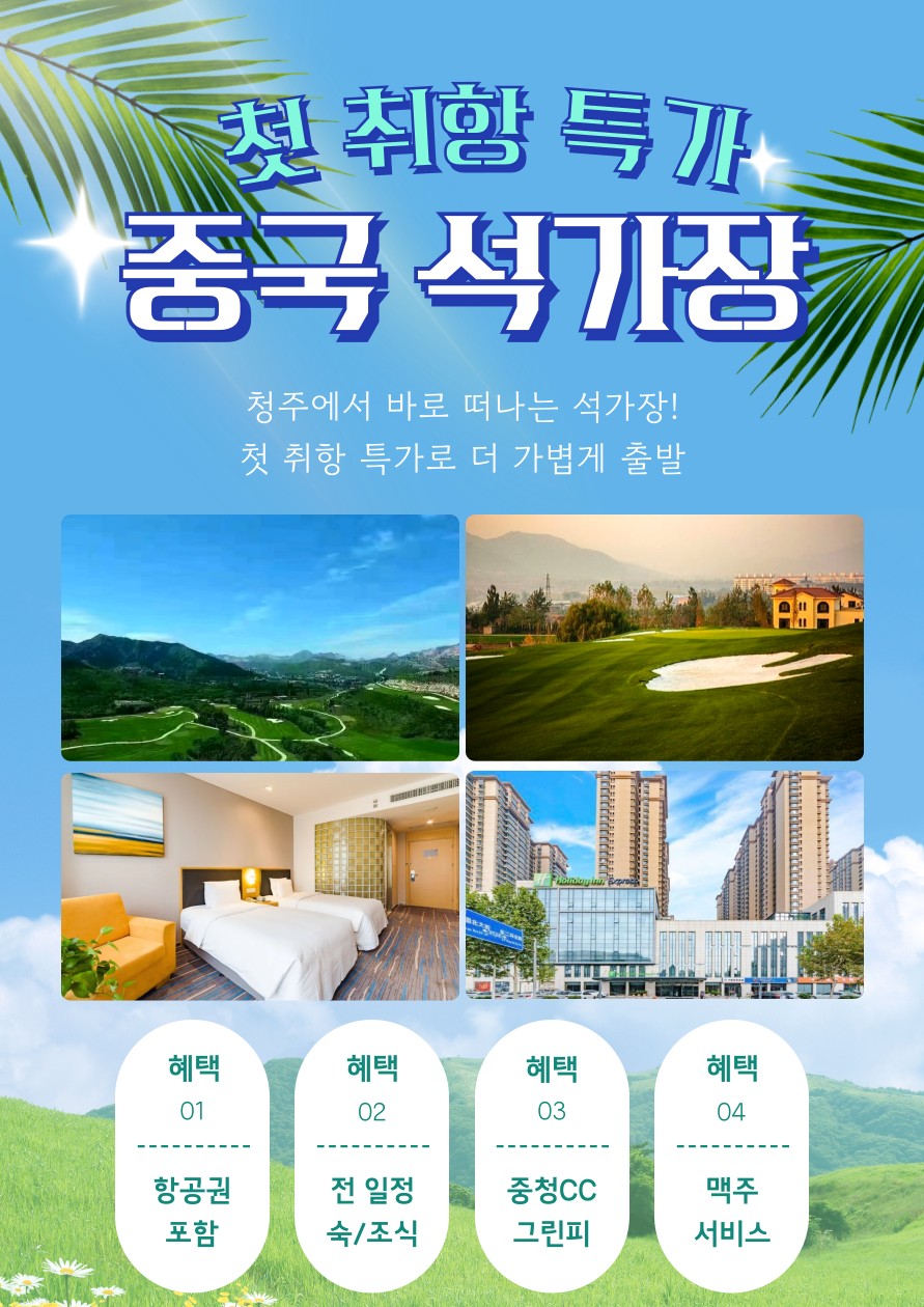 4월♻️ 석가장 중청cc&홀리데이 호텔 품격 골프 ♻️3박4일 690,000원 샌딩+팁+중식외 올포함