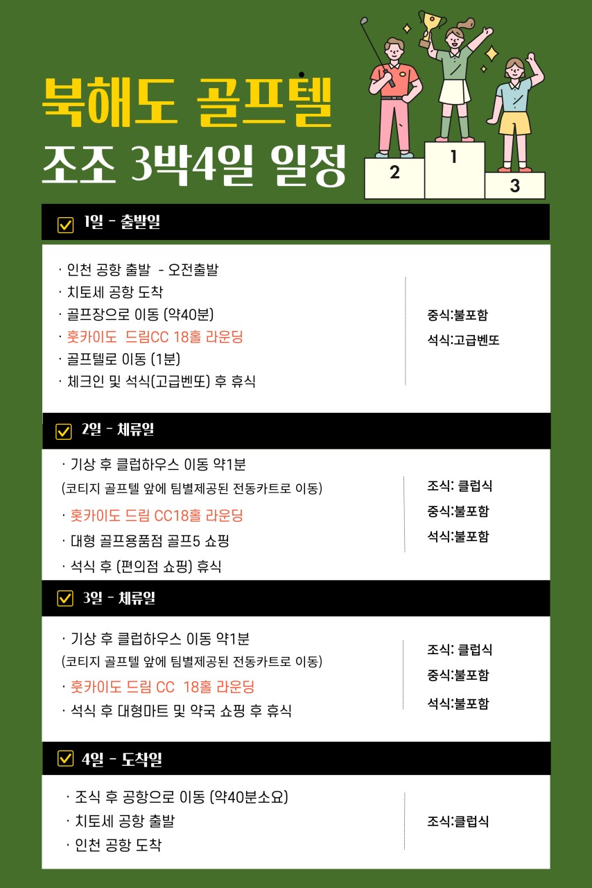 ✳홋카이도 드림 골프텔 안내사항✳