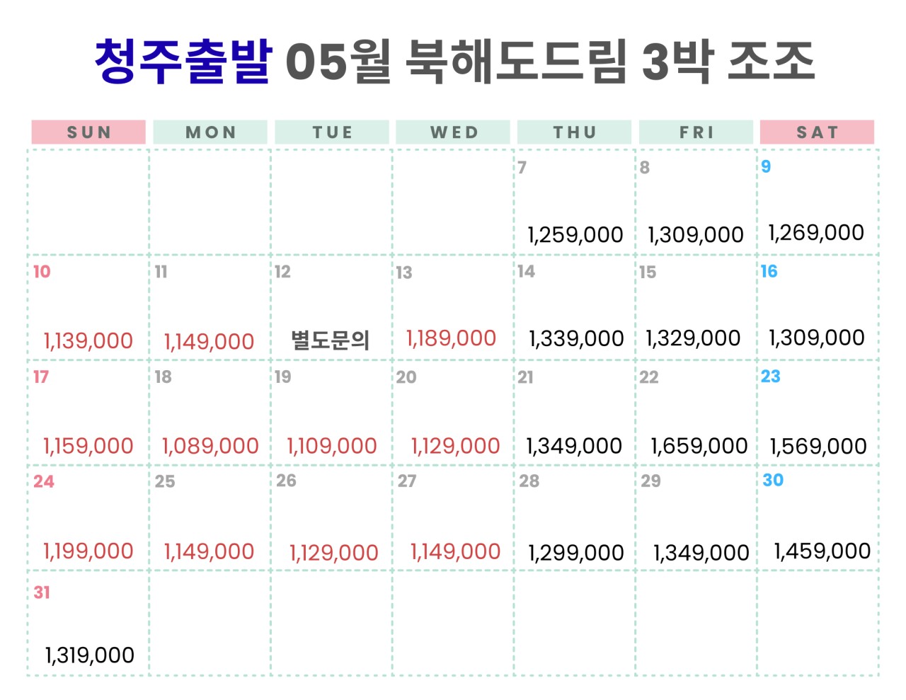 인천출발 /청주 출발 요금표 업로드 0227