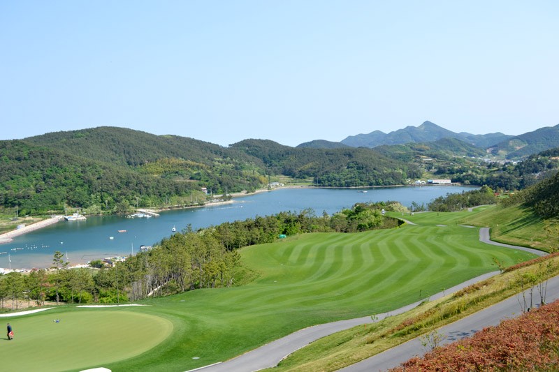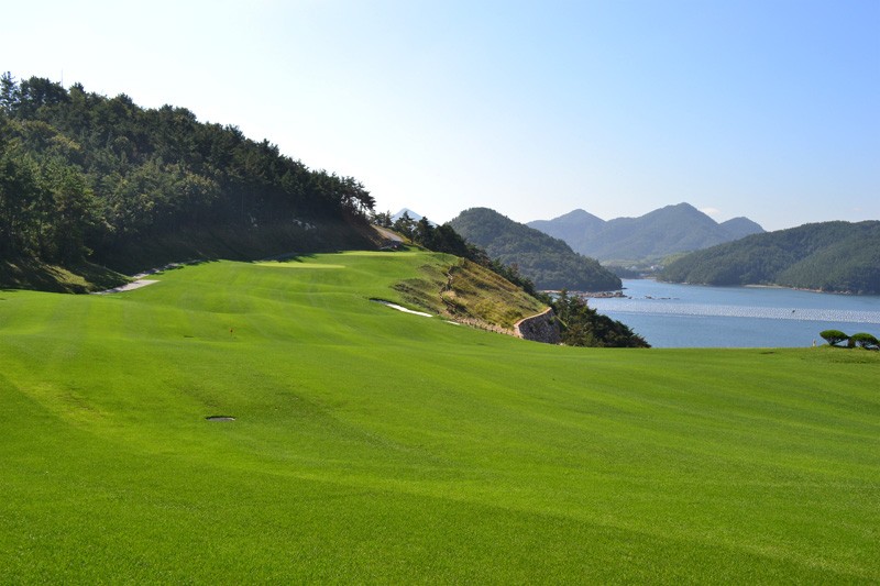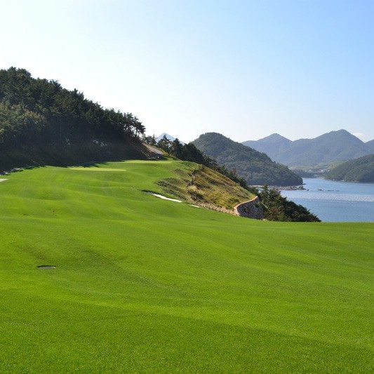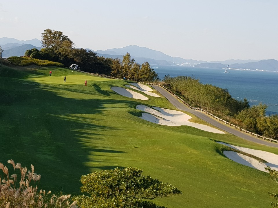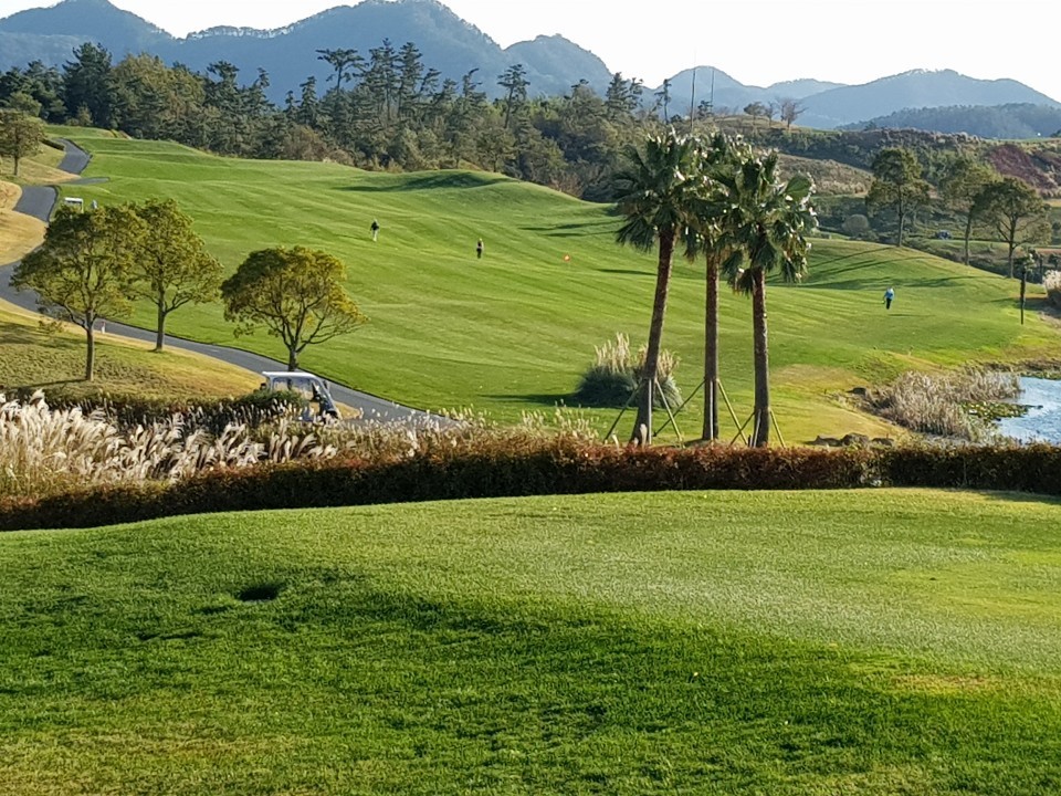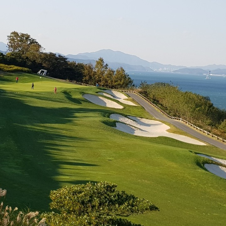 바다가보이는 탁트인 시야 페어웨이 및 그린 관리상태 최상급인 회원제 골프장 입니다. ^^